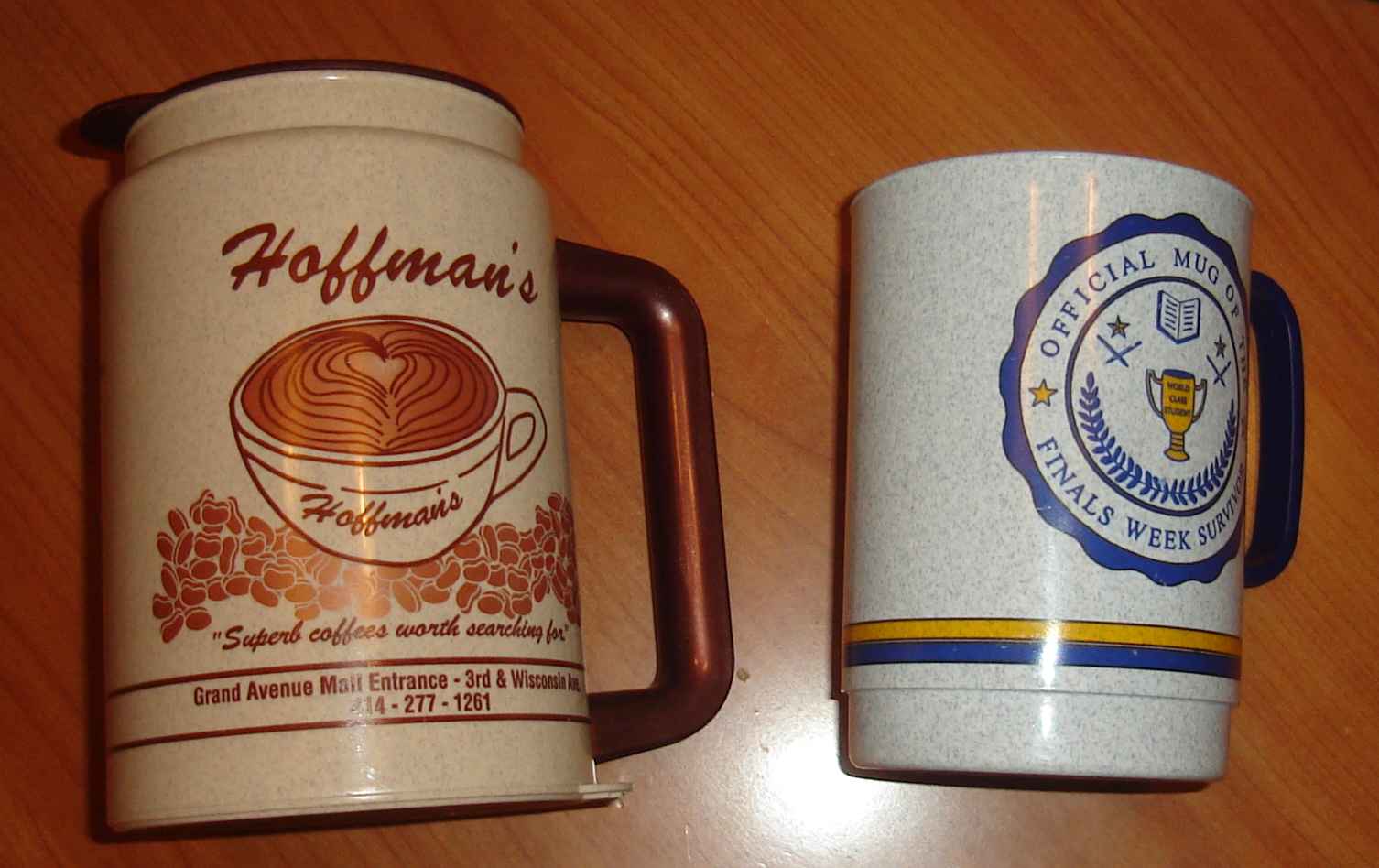 They’ve been with me a long time. I’ve moved most of them at least four times, and most of them date from the middle 1990s. But that is my wont, to keep things if they’re functional things or have some sort of meaning to me. But, man, these are plastic coffee mugs, for crying out loud.