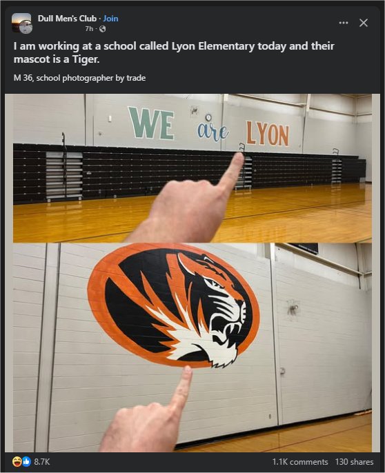 I didn’t click through to educate the fellow, but that’s a Republic school. It’s named after General Lyon, who died at the Battle of Wilson’s Creek. The other elementary schools are named after General McCulloch and General Schofield (and they face each other across a street, two miles from the later Lyon Elementary, because Republic built all of its schools together back in the day for the ease of bussing or something, but that seems weirder than what that dull man posted).