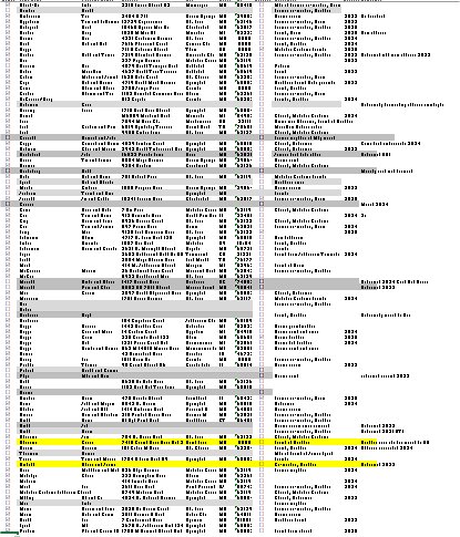 When the card comes back with the yellow label or when we learn otherwise someone has moved, the address gets erased but the name gets left on with a grey or yellow stripe. How long until I remove those lines from the list? Scott’s been on it ever since I started tracking diligently in the spreadsheet instead of working from an address book like an old man–I think we briefly worked from my wife’s Google contact list, but it favored recent friends.