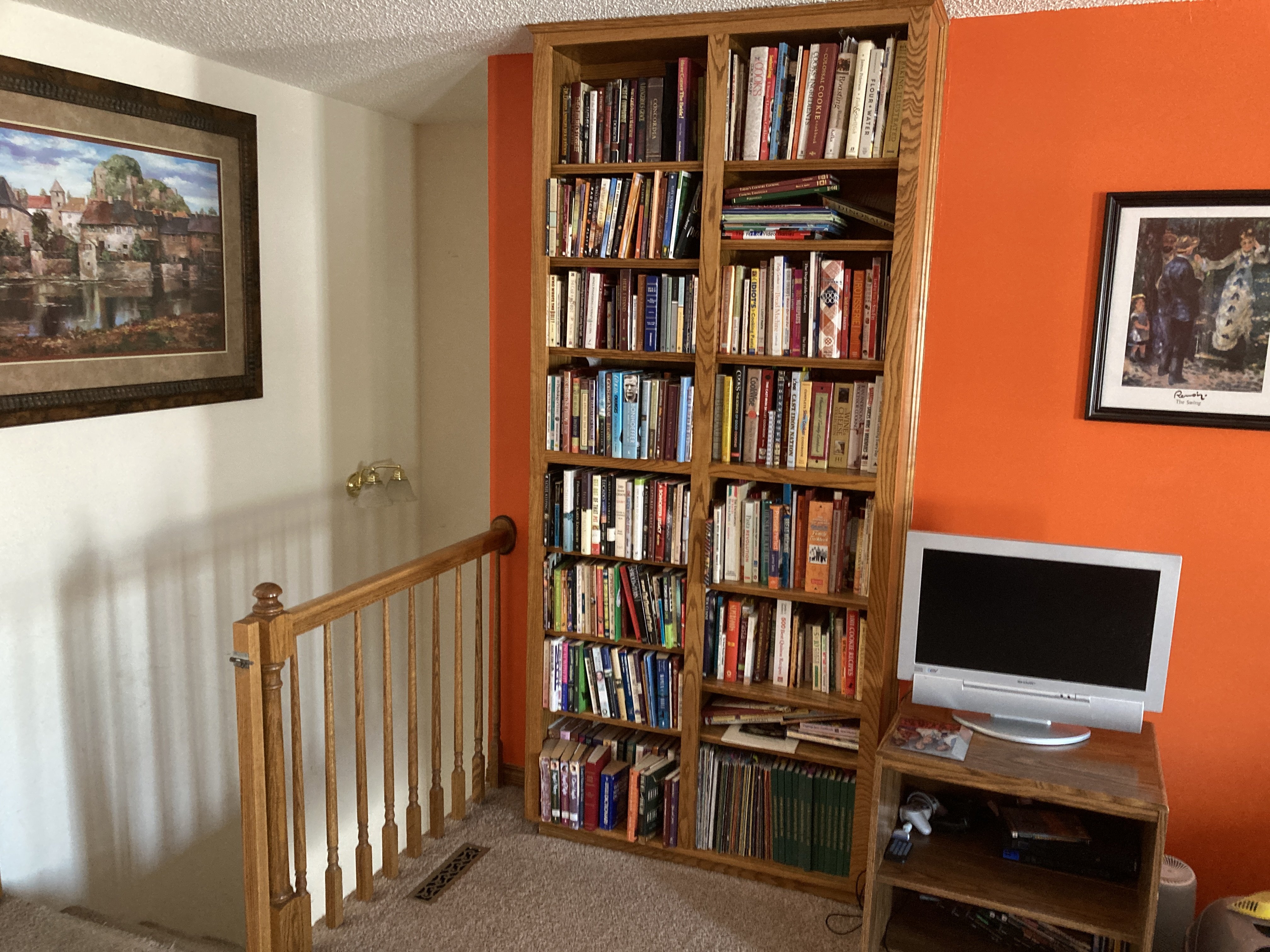 The built-ins upstairs still contains my beautiful wife’s cookbooks and some books of religious significance, but not so many library books these days.