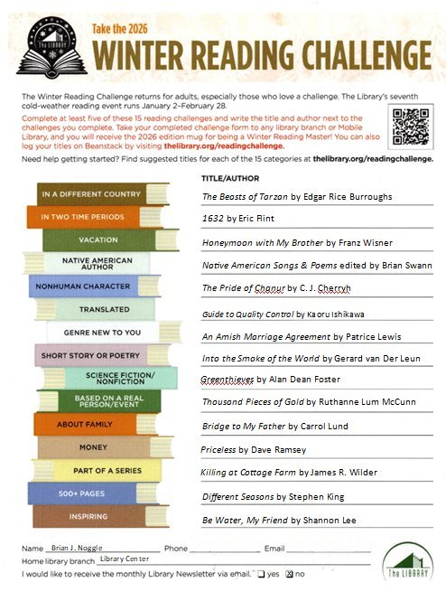 I really enjoy the annual winter reading challenge because it really gives me a good head start on the annual reading total (which is 18 books as of this writing) and because, in finding books to fit the categories, I end up picking up books that might not be what I want to read next in other circumstances. Like a quality textbook. Like finally taking one of the lighter weight Stephen King books off of the shelves. Like the travel book. And so on.